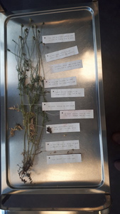2022Ik maakte een klimaatgedicht, trok een klaproos uit en legde de plant op mijn werktafel. Het proces van verdorren stuurde de tekst. Het uiteindelijke gedicht bevestigde ik in onderdelen aan de plant. Het lot van de mens is verbonden aan dat van flora en fauna.