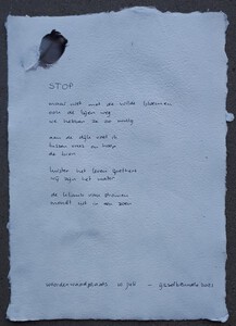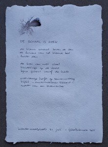 2021Daggedicht 4 van 10 juli op handgeschept ijsselpapier (linnen met gejutte veer)