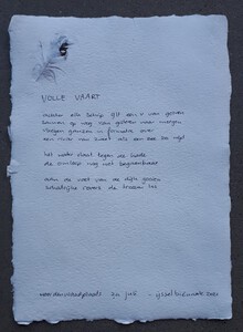 2021Daggedicht 3 van 3 juli 2021 op handgeschept ijsselpapier (linnen met gejutte veer)