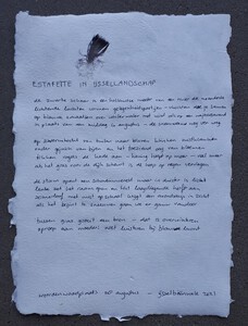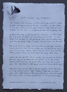2021Daggedicht 9 van 14 augustus 2021 op handgeschept ijsselpapier (linnen met gejutte veer)