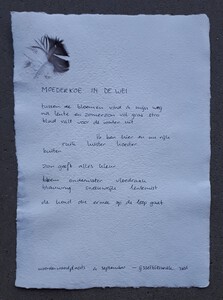 2021daggedicht 14 van 18 september 2021 op handgeschept ijsselpapier (linnen met gejutte veer)
